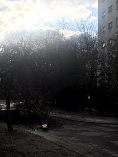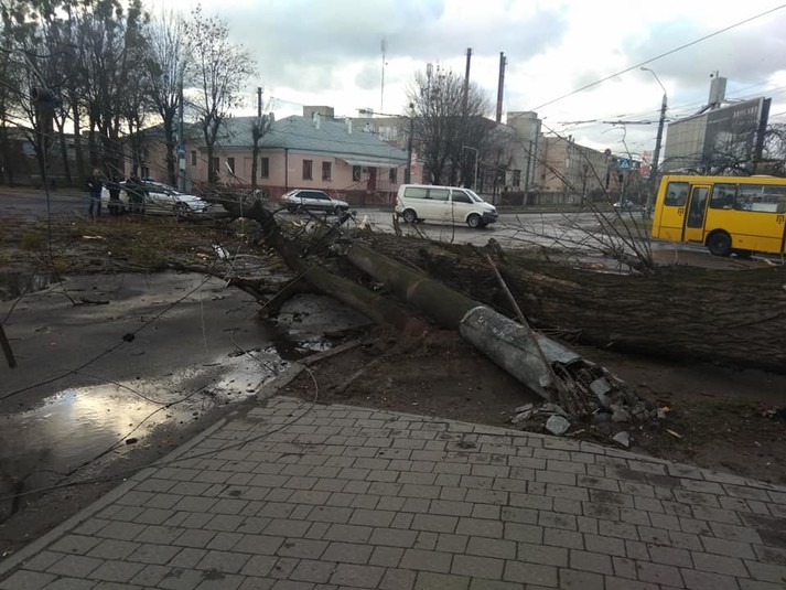 На вулиці Сяйво від вулиці Широкої впало дерево і опора освітлення. Рух по вулиці Сяйво заблоковано. Потерпілих немає, на місці працює аварійна бригада.