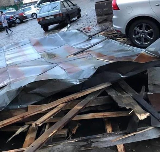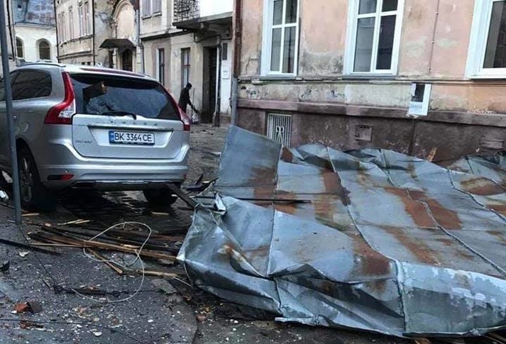 Зокрема, близько 07:30 год по вулиці Рибній шквальним вітром було пошкоджено дах будинку, який впав на припарковану машину. Автомобіль зазнав ушкоджень.