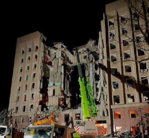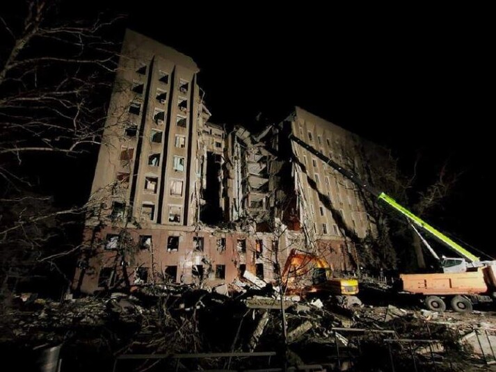 Повідомляється, що цілодобово триває розбір завалів і пошук людей з-під облдержадміністрації, яка зруйнована внаслідок влучання ворожої ракети.