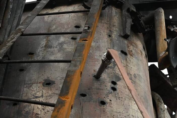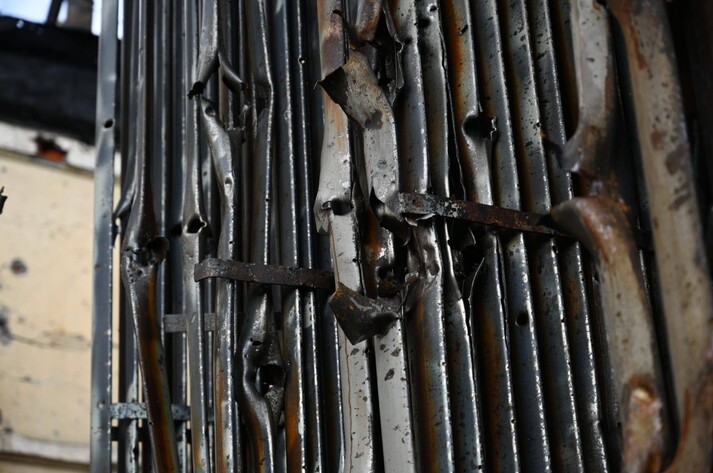 Микита опублікував світлини, на яких видно, як після вибуху ракети розлітаються сформовані округлі елементи та буквально прорізають метал.