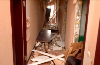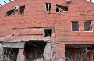 Ворожий удар частково зруйнував одну з будівель, а вибухова хвиля та уламки пошкодили кілька багатоповерхових будинків, що знаходяться поруч.