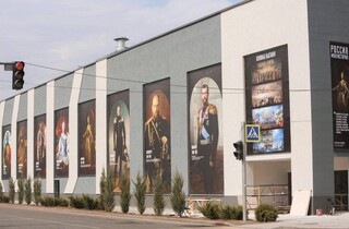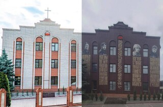 Так, на захопленій будівлі заводу «Продмаш», перетвореній окупантами на музей пропаганди - багатометрові портрети російських царів.