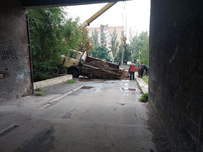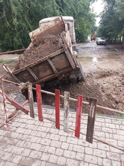 Самоскид потрапив у покинуту місцевими комунальниками яму