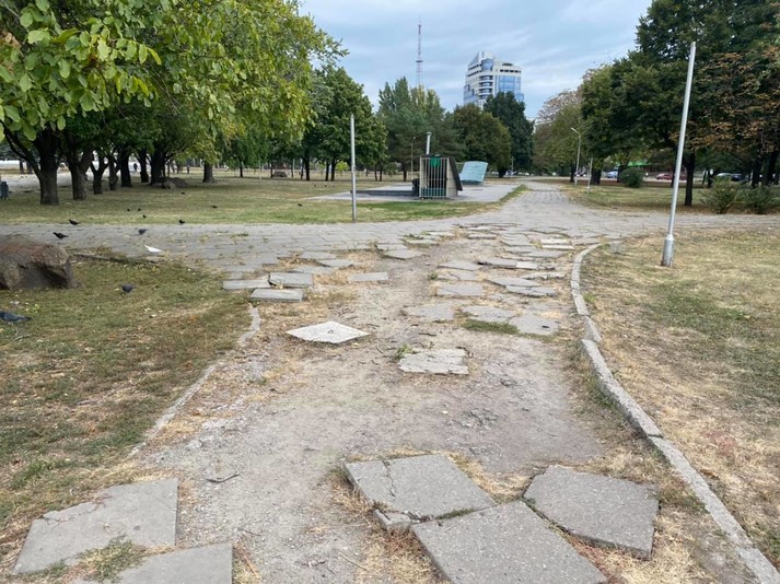 «Що сказати, друзі…Центральна площа міста! Але наскільки занедбаний парк! Куди ділись фонтани? Бруківка і старезні плити з часів СРСР і Брежнєва розбита, лежить хвилями, тож тут мамі з возиком або на велосипеді чи на самокаті з дітками не поїздиш… Клумби не доглянуті,навіть і натяку на якісь квітники… Лавиці засмічені, хоч і виглядають непогано, як раритет (хіба що можна хоча б пофарбувати)…Одна радість – дерева! Чудові велетні дуби, клени і тополі радують серце!», – описала стан парку зірка, зауваживши, що їй соромно через такий безлад у рідному місті.