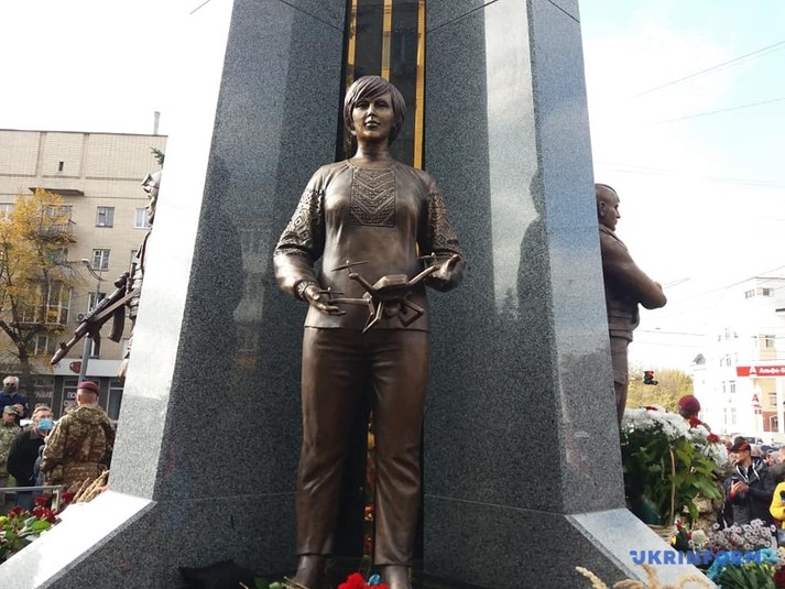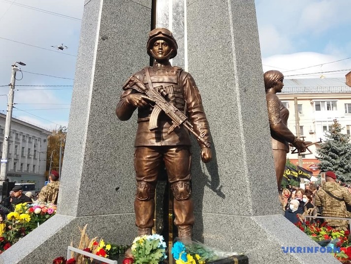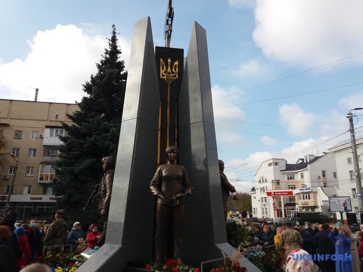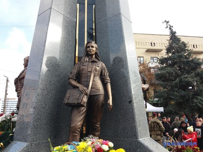 «Із кожної сторони монументу зображені бронзові фігури. Солдат стоїть на сторожі нашої держави; волонтер має образ жінки у вишиванці, що символізує її патріотизм; медсестра – це уособлення молодої дівчини, яка поїхала рятувати життя наших воїнів; доброволець – це людина з народу, яка за покликом серця поїхала захищати свою державу», – розповіла Євпак.