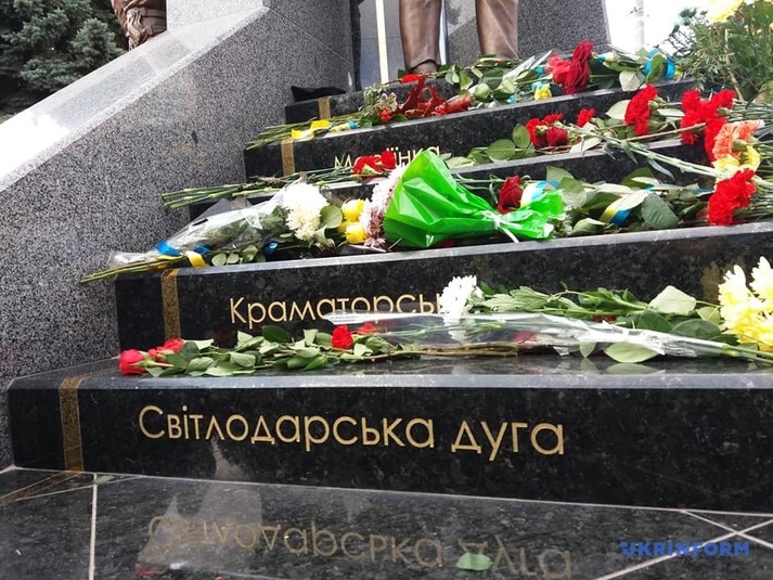 Усі бронзові фігури розташовані на сходинках, на яких написані населені пункти, де загинули захисники. Вгорі монументу розташоване сонце, що символізує світле майбутнє України.