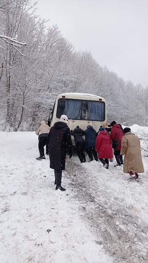 «Шановні, якщо чистите дорогу, чистіть усі вулиці наших сіл, там теж живуть люди, підсипайте центральну дорогу. Якби не наші люди, автобус опинився би в обриві. Не передати страх нашого шофера, і людей які стояли над обривом і штовхали автобус з останніх сил», – розповідає очевидиця події.