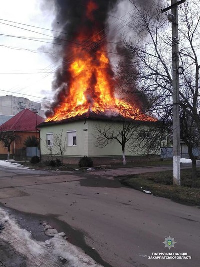 Патрульні Мукачева вивели з палаючого будинку сім’ю, яка не підозрювала, що горить