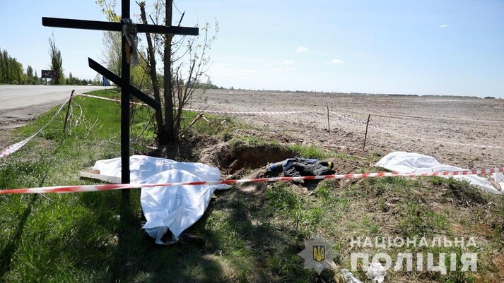 У Бучанському районі поліція Київщини виявила та оглянула тіла трьох убитих російськими окупантами мирних осіб. Захоронення знайшли обабіч окружної дороги неподалік Макарова, де в період бойових дій розміщувались позиції росіян. Про це поліція Київської області повідомляє на своїй сторінці у Facebook.