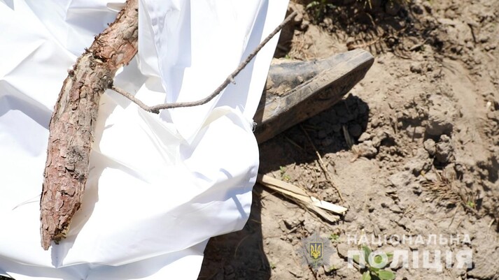 За інформацією правоохоронців, у ямі перебували тіла трьох чоловіків, серед яких один іноземець. Поряд із захороненням виявили розтяжку із гранатою «Ф-1», яку залишили окупанти.