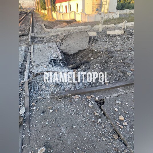 Вранці з’явилися фотографії з місця вибухів. Це в районі залізничної станції Новобогданівка, що на північ від Мелітополя, дорогою на Запоріжжя.