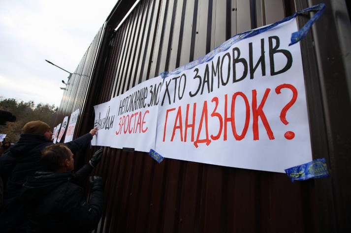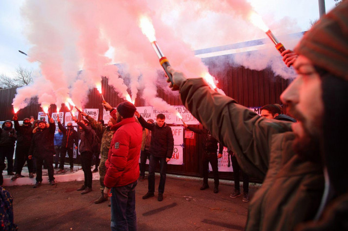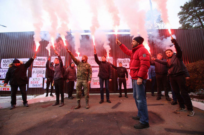 Активісти запалили фаєри під воротами оселі Авакова. Вони скандують «Авакова у відставку» і «Хто замовив Катю Гандзюк?».