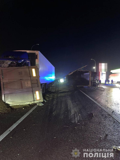 Одна з вантажівок переїхала легковий автомобіль