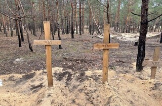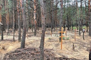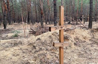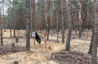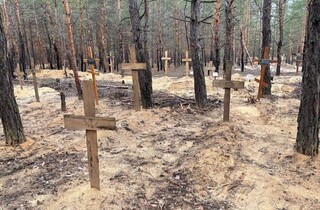 Водночас «Настоящее время», опублікував фотографії масових поховань у лісі в Ізюмі, отримані від українських журналістів.