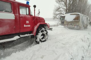 Кіровоградська область. поблизу села Велика Виска ліквідовано затор, 30 вантажних автомобілів стоять на узбіччі. Відбуксовано 164 транспортні засоби, 293 людям надана допомога.