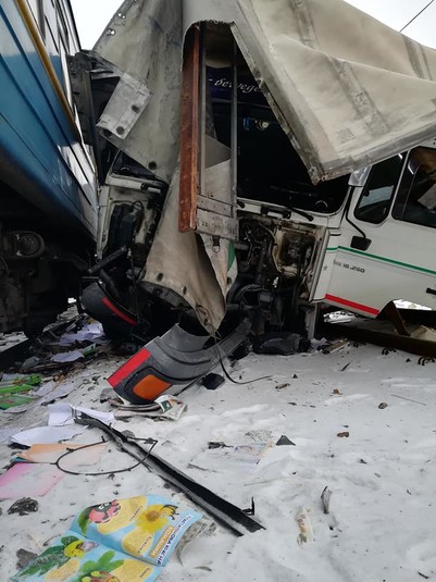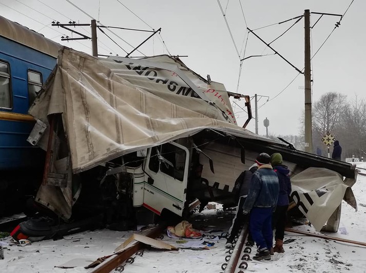 Потяг перетворив на мотлох поштову вантажівку, що застрягла на колії