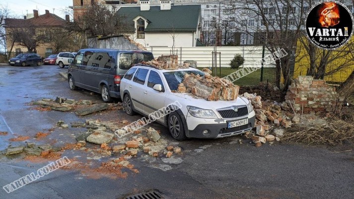 А у селі Білі Ослави дерево впало на покрівлю двоповерхової школи. У Львові 17 лютого внаслідок пориву вітру постраждало два авто. Як передає Варта1, на припарковані автомобілі впала частина огорожі та пошкодила обидва транспортні засоби. Автівки отримали значні ушкодження.
