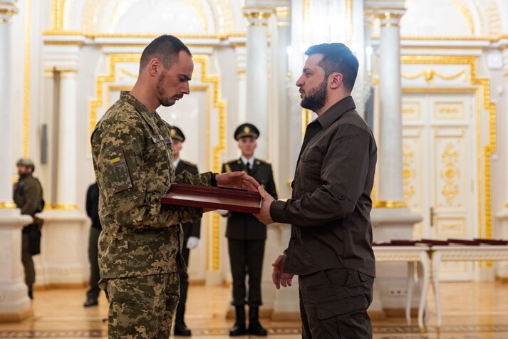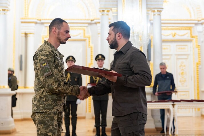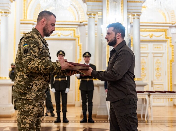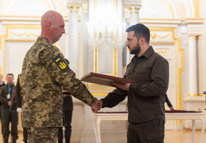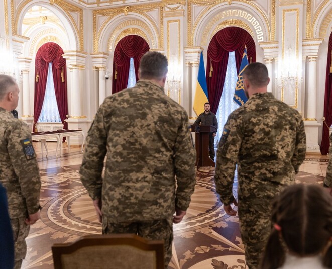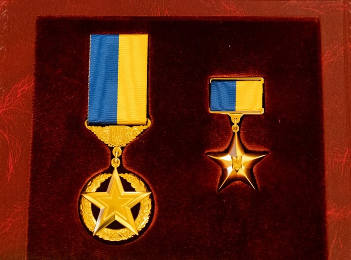 Президент вручив орден «Золота Зірка» полковнику Олександру Мостовому, який успішно атакував російський військово-транспортний літак Іл-76 МД, два ворожих гелікоптери та знищив ворога, і полковнику Денису Дикому, полк якого веде запеклі оборонні бої з підрозділами збройних сил Російської Федерації за місто Охтирку та її околиці.
