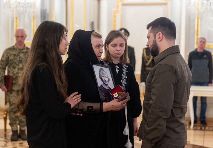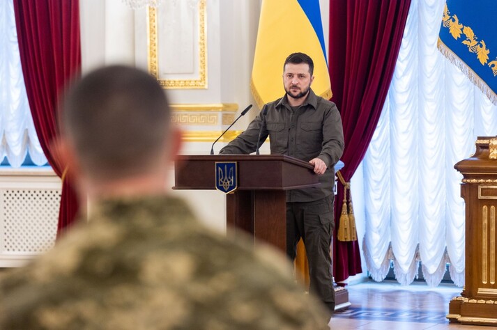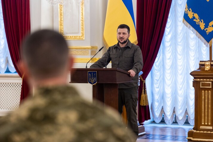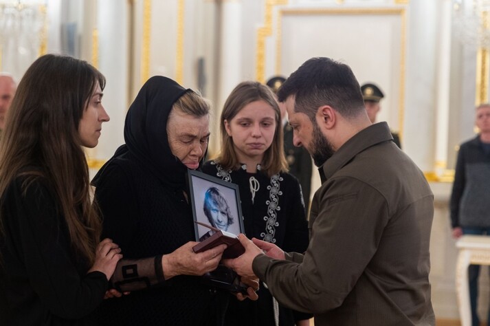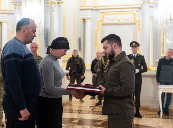Президент України Володимир Зеленський вручив ордени «Золота Зірка» військовослужбовцям Збройних Сил України, яким присвоєно звання Героя України, та членам родин військових, які відзначені цим званням посмертно. Про це повідомляє Офіс президента.