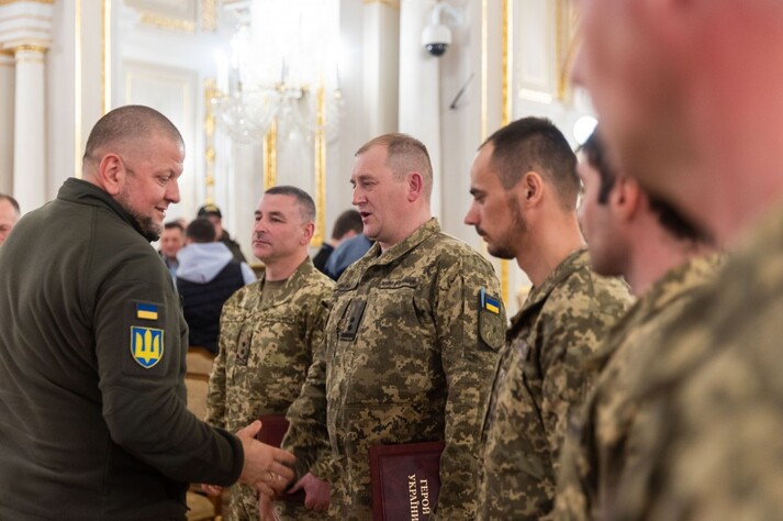 Орден «Золота Зірка» з рук Володимира Зеленського отримав командувач Сухопутних військ Збройних Сил України Олександр Сирський, який із початку збройної агресії особисто керує обороною м. Києва та Київської області. Він організував відбиття атак значно більших сил противника, завдання йому значних втрат. Завдяки його військовій майстерності та керівництву підпорядкованими військами було зупинено російську навалу, а згодом – організовано контрнаступ з подальшим визволенням населених пунктів Київщини, в результаті чого противник був змушений відступити за межі державного кордону України.