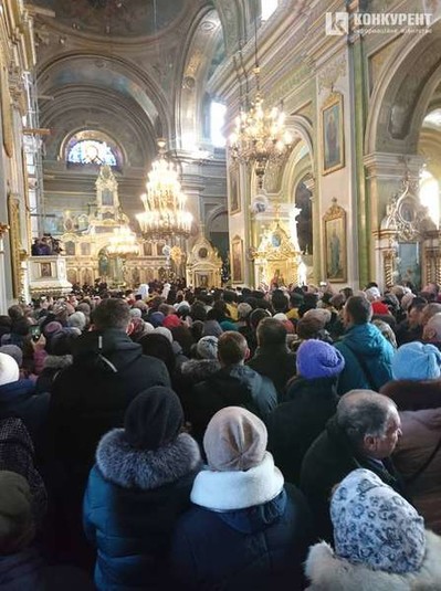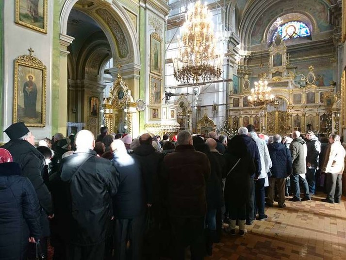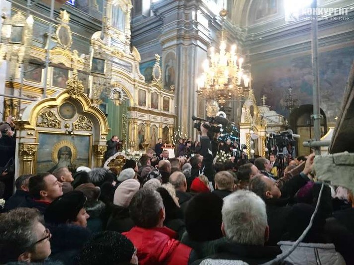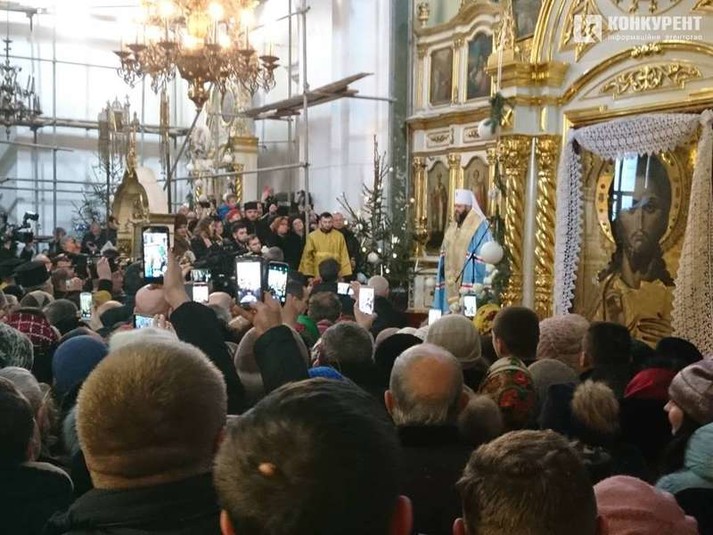 Під час відправи виставлять для огляду Томос надання автокефального церковного устрою Православній церкві України. Вхід до храму вільний. На території зібралося чимало людей.
