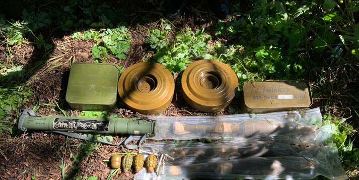 У Чернігівській області силовики та військові проводять контрдиверсійні заходи, під час яких було виявлену схованку зі зброєю російської армії.