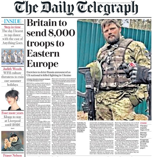 Уряд Великобританії планує направити 8000 військовослужбовців до Східної Європи, що Daily Telegraph називає «одним із найбільших розгортань із часів холодної війни». Газета повідомляє, що танки, артилерія, бронетехніка та авіація також спрямовуються для підтримки сил НАТО у регіоні. Вони беруть участь у серії давно запланованих навчань, але газета цитує міністра оборони Бена Воллеса, який сказав, що це «демонстрація солідарності та сили».