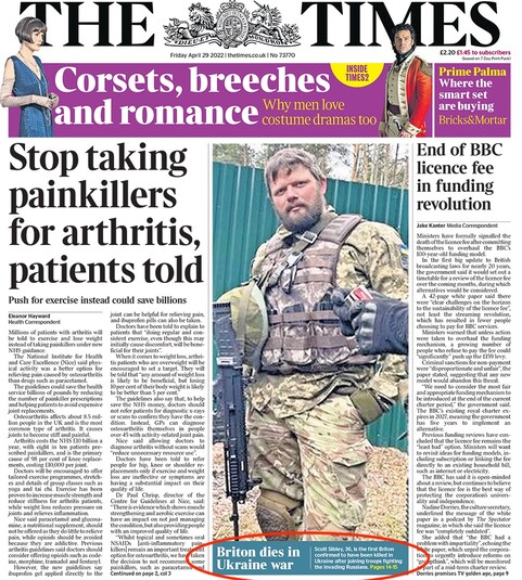 The Times «також друкує фотографію британського військового над заголовком: «Британець загинув на війні в Україні».