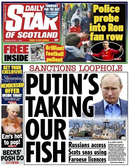 The Daily Star із заголовком «Путін забирає нашу рибу» повідомляє, що російські судна, як і раніше, мають доступ до району біля північного узбережжя Шотландії, контрольованого Великобританією, і до Фарерських островів.