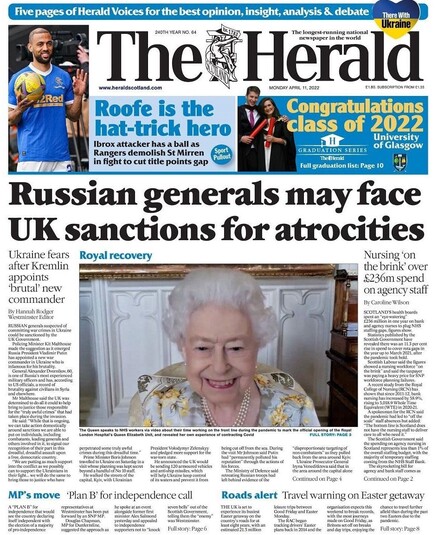 Зокрема, газети Британії та Шотландії висвітлюють нові російські санкції, замінований Чорнобиль та заклик до економії енергоносіїв.