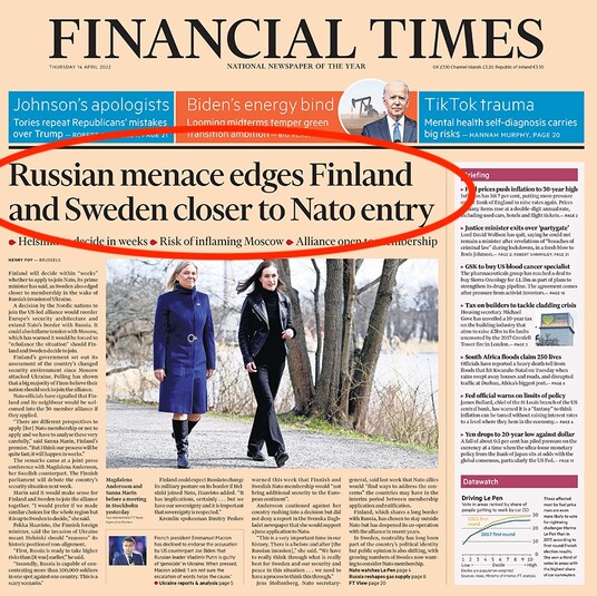 Фінляндія вирішить, чи хоче вона вступити до НАТО протягом кількох тижнів, повідомляє Financial Times, а Швеція, можливо, планує подати заявку в червні. Газета повідомляє, що офіційні особи НАТО дали зрозуміти, що обидві країни будуть вітатись в альянсі, але додає, що Москва попередила, що цей крок змусить її «збалансувати ситуацію».