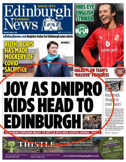 Edinburg Evening News повідомляє, що сироти, які були змушені покинути Україну, переїхали до своїх нових будинків в Единбурзі. У документі йдеться, що діти жили в групових будинках із братами та сестрами та опікунами в Україні та мають аналогічні умови проживання в Единбурзі.