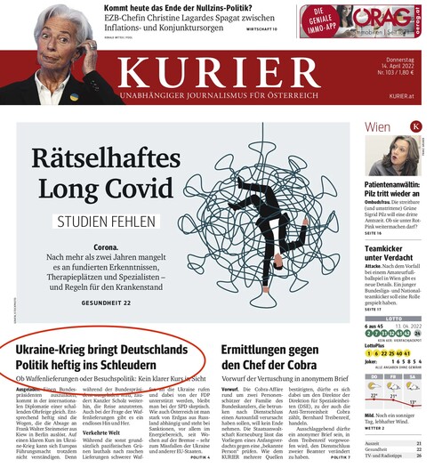Газета Kurier. «Війна в Україні кидає політику Німеччини у жорстоке обертання. Будь то постачання зброї чи політика відвідування: чіткого курсу ми не бачимо».