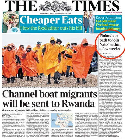 The Times повідомляє, що Фінляндія та Швеція, схоже, готові подати заявку на вступ до НАТО, оскільки війна в Україні «підштовхнула громадськість до підтримки» членства.