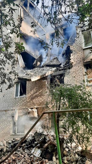 «Вчора вночі ворог поцілив у п’ятиповерховий будинок, що майже повністю зруйновано. Місто зазнає обстрілів майже щодня», – йдеться у повідомленні.