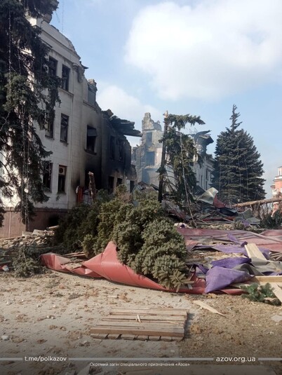 Російські окупанти, що скинули на Маріупольський драматичний театр бомбу, тепер не дають забрати з-під завалів людей, які ховалися в бомбосховищі будівлі. Про це повідомляє полк «Азов-Маріуполь» у Telegram.