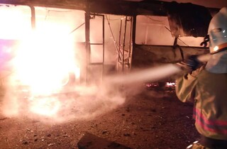 На місцевому автопідприємстві згоріли два автобуси, до десяти – пошкоджені. Виведені з ладу газогін та водопровід. На місці працюють фахівці.