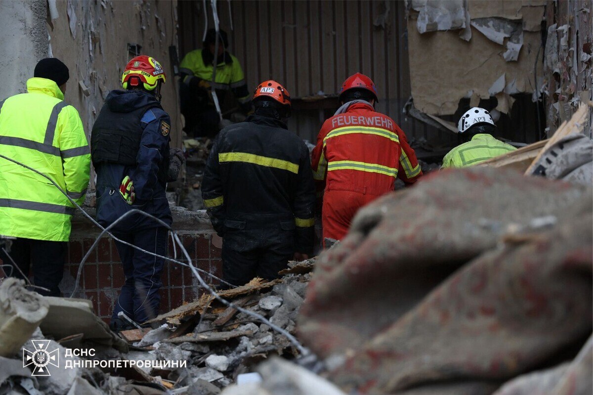 Внаслідок цинічної нічної атаки російських військ по місту Дніпро житловий будинок зазнав значних руйнувань. Рятувальники, що працювали на місці події, дістали з-під завалів тіло третьої загиблої особи – чоловіка.