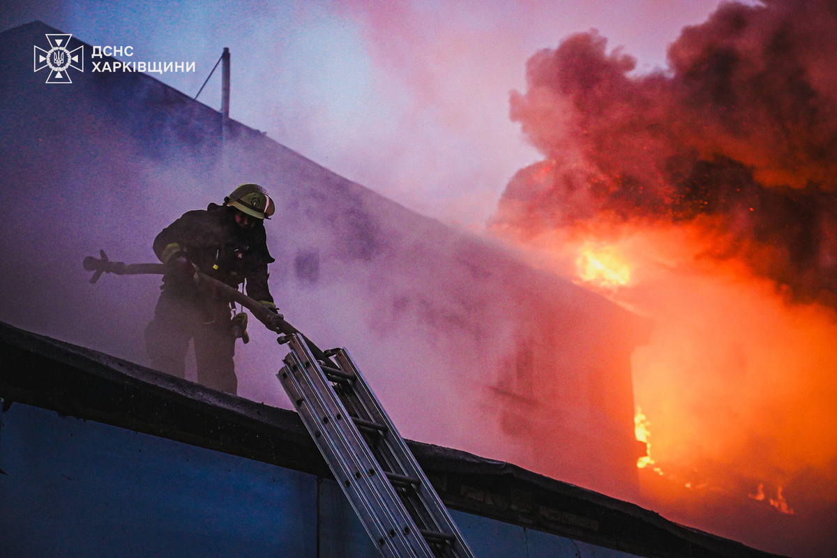 Зазначається, що російські БпЛА влучили по цивільному підприємству у Київському районі – у виробничій та складській будівлях виникли пожежі загальною площею понад 3900 кв.м.