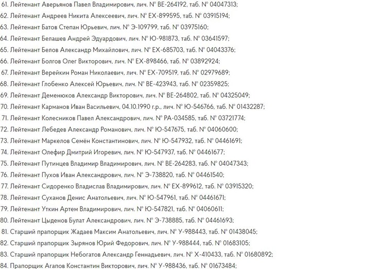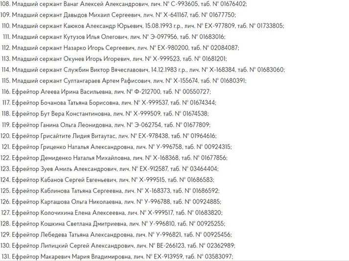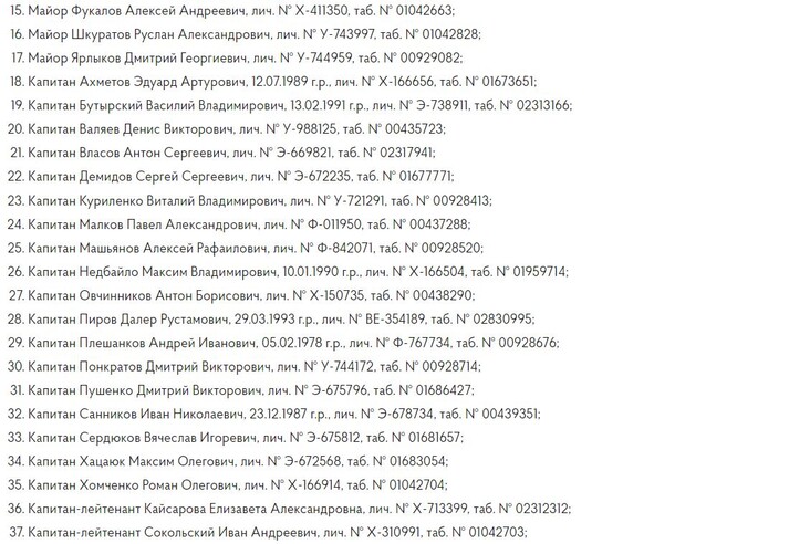 «ГУР МО України здобуло список військовослужбовців 1237 центру стратегічної радіоелектронної розвідки (в/ч 25137) м. Калінінград, які скоїли воєнні злочини проти народу України. Покидьки! Без честі, душі та совісті. Не всі з вас дійдуть до суду, щоб постати перед ним. ГУР гарантує», – йдеться у повідомленні.