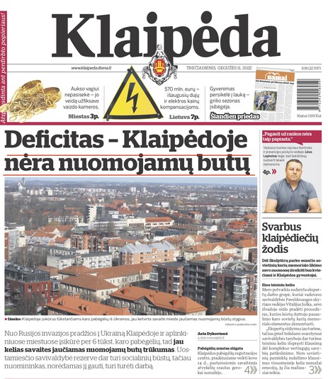 Литва. Газета Klaipeda. Із початку російського вторгнення в Україну в Клайпеді та прилеглих містах оселилися понад 6 тисяч біженців, тому вже кілька тижнів не вистачає орендних квартир. Муніципалітет ще має соціальне житло в резерві, але орендар повинен мати роботу, щоб його отримати. У той же час потік до Клайпедського центру реєстрації біженців, який запрацював 14 березня, за останні тижні значно зменшився.