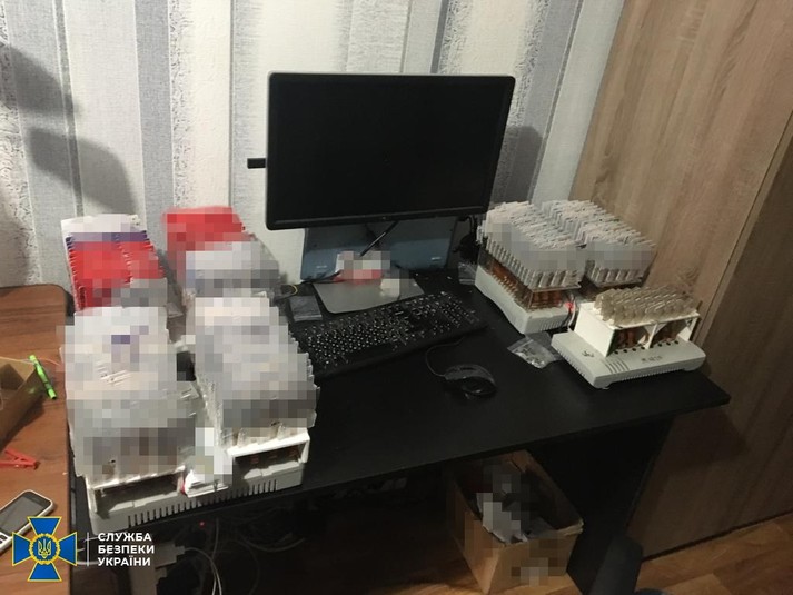 Під час проведення обшуків за адресами перебування організаторів протиправної схеми вилучено техніку та сім-картки на суму понад 1 мільйон гривень, а саме: 3 сім-банки на 16 портів кожен, 2 сім-банки на 32 порти, 14 сім-банків на 128 портів, 9 VoIP шлюзів на 32 порти кожен та понад 22 тисячі сім-карток, а також комп’ютерне обладнання, на якому розміщувався віртуальний сервер зі спеціалізованим програмним забезпеченням.