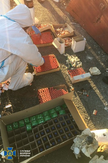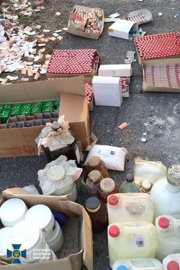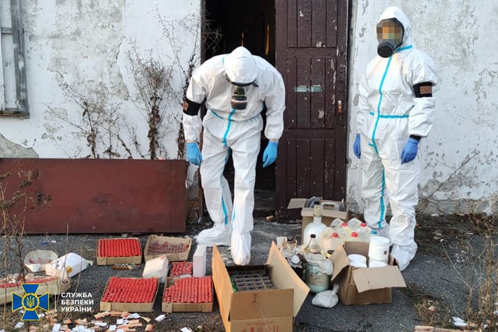 Там правоохоронці виявили велику кількість отруйних речовин високого класу небезпеки, близько 700 одиниць біологічних агентів, орієнтовно 15 літрів прекурсорів та близько 20 кг хімікатів не встановленого походження.