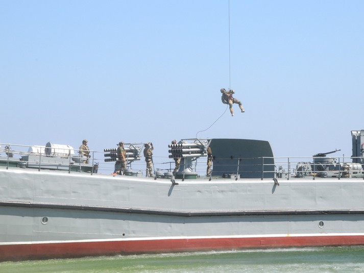 Окрім того, паралельно свої тренування провели спецпризначенці, які відпрацювали десантування безпарашутним способом на борт корабля.
