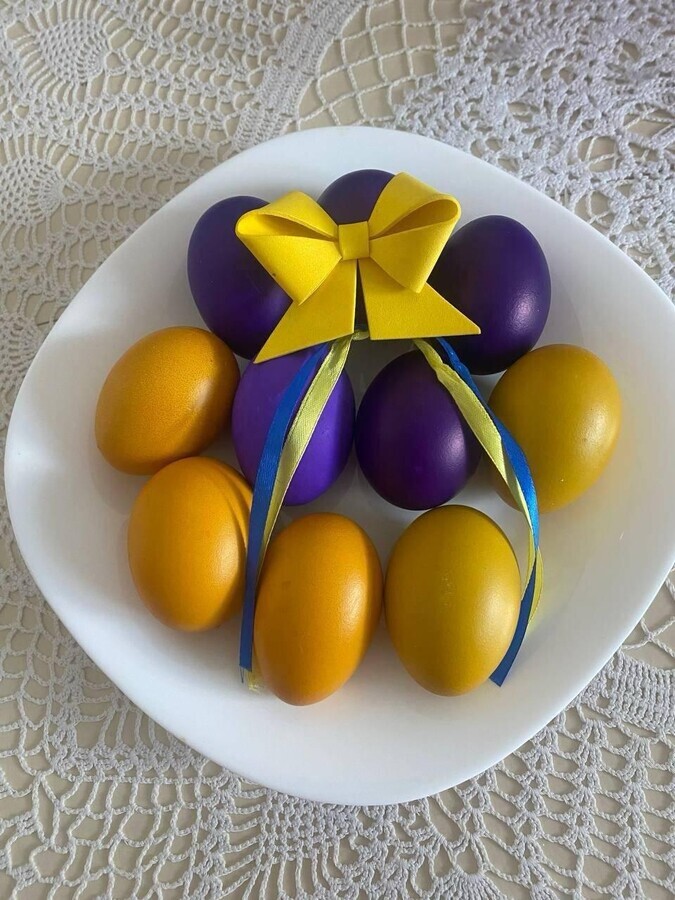 Українці на тимчасово окупованих територіях святкують Великдень і чекають на звільнення. Оскільки відкрито висловлювати свої погляди вони не можуть, то роблять це завуальовано – фарбують яйця у синій та жовтий кольори, а також відповідно декорують великодню випічку. Як інформує «Главком», відповідні світлини оприлюднили активісти «Жовтої стрічки» – руху спротиву на тимчасово окупованих територіях України.