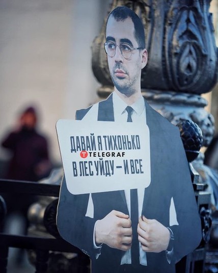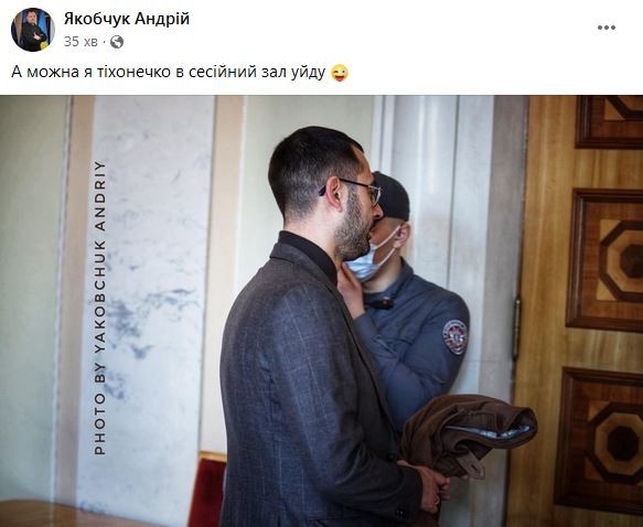 Сьогодні, 15 лютого Верховна Рада повернулася до звичного режиму роботи після карантину. Парламентарі розпочали засідання о 10:00. Прибулого на засідання «слугу» Трухіна чекав біля входу у парламент іронічний плакат зі словами, які він казав правоохоронцями після резонансної ДТП за своєю участю: «Давайте я тихенько в ліс піду – і все».