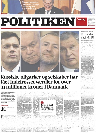 Politiken: «Російським олігархам та корпораціям заморозили цінності більш ніж на 33 мільйони крон у Данії». Кілька найбагатших людей Росії та найбільш лояльних до Путіна компаній мають великі цінності в Данії, які зараз заарештовані через війну в Україні.