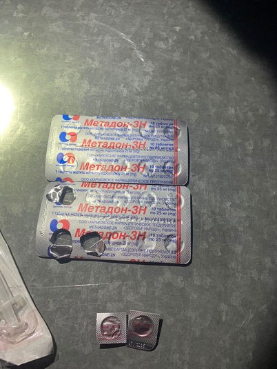 Як з’ясувалося під час особистого огляду, один із українців віз кілька згортків із білою речовиною: зі слів порушника, метадон, два блістери з пігулками, що містять наркотичну речовину «метадон-3Н» по 25 мг кожна та кілька пігулок, що містить наркотичну речовину «трамадол» по 200 мг кожна.