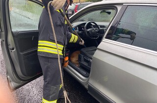 Співробітники аварійно-рятувальної частини міста Луцька за допомогою спеціального пристрою змогли безпечно витягнути чотирилапого з автомобіля.