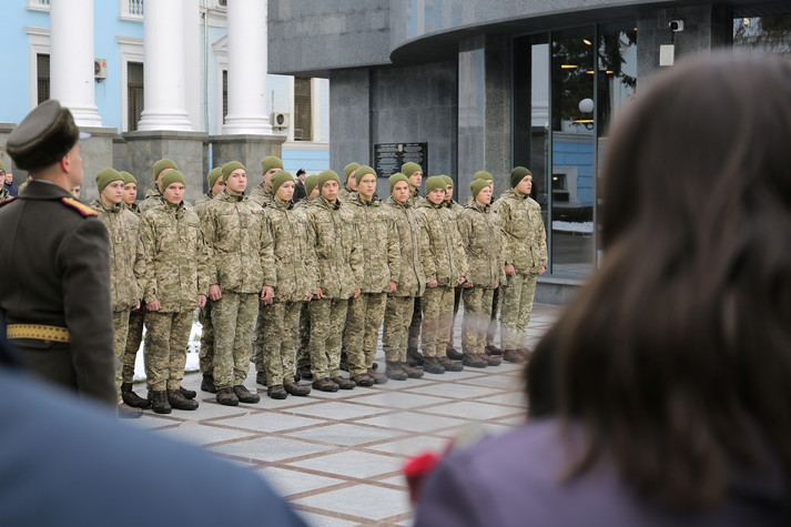 У ранковому церемоніалі взяли участь офіцери та працівники структурних підрозділів Міністерства оборони та Генерального штабу ЗС України, військовослужбовці Київського гарнізону, близькі та рідні загиблих героїв.